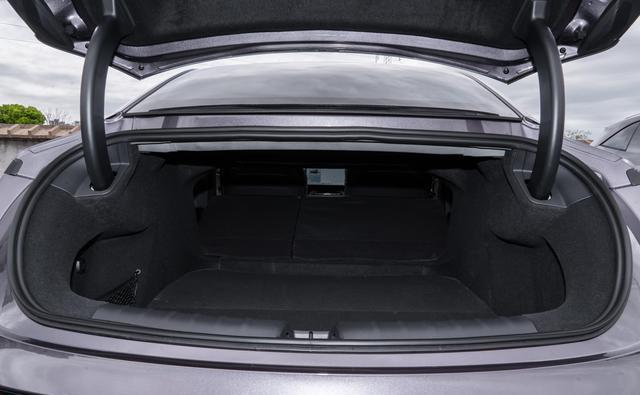关于装载能力,车内零零碎碎的储物格设计得比较顺手。门板上的储物槽挺深,能放下好几瓶水。中控台下方有一个很大的镂空区域,放个随身的小包或者抽纸盒很合适。两个杯架带有限位器,能适应不同粗细的杯子。中央扶手箱的容积中规中矩。后备箱的常规容积是462升,内部比较规整,两侧的轮拱侵占不算多。我自己比划了一下,竖着放一个28寸的大行李箱和一个24寸的登机箱后,旁边还能塞下几个双肩包。后排座椅支持4/6比例放倒,放倒后能形成一个接近纯平的空间,扩展性不错。如果是两个人出去露营,塞下帐篷、睡垫、折叠桌椅、炊具这些基础装备,空间是够用的。但要是想同时带上大型的充气床垫、天幕、还有一大堆食材饮料,可能就需要更精细地规划一下了,毕竟它还是个轿车的形态,垂直高度有限。车头还有一个20升的前备箱,放个充电线缆或者不太脏的小件物品挺合适。