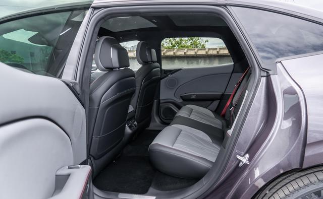 15.4英寸的悬浮式大屏,芯片用的是高通8295,这是目前车机芯片里比较新的一代,车机系统也更新到了最新的版本。实际滑动菜单、打开应用,基本感觉不到卡顿,流畅度有基础保障。它的语音交互除了能控制常规的导航、音乐、空调,还多了个叫Eva的虚拟形象,能做一些简单的表情互动,比如你夸它,它可能会笑一下,算是个增加趣味性的小功能。方向盘是真皮包裹的,握感扎实,粗细适中,后面的怀挡用起来很顺手,习惯了之后基本不用低头看。前排给配了两个50W的无线充电板,而且是带风扇主动散热的,这个细节考虑得比较周到,避免了手机充电时过热降速。车内能摸到的地方,比如中控台顶部、门板扶手区域,都用了软性材料覆盖,手感不错。座椅的皮质触感也可以,不是那种硬邦邦的。音响是全车23个扬声器的ZEEKR Sound Pro系统,支持7.1.4声道的杜比全景声。我用自己的流媒体账号试听了几首歌,人声比较清晰,低音也有一定的量感,整体声场营造得比较开阔,听个歌看个电影,氛围感是足够的。